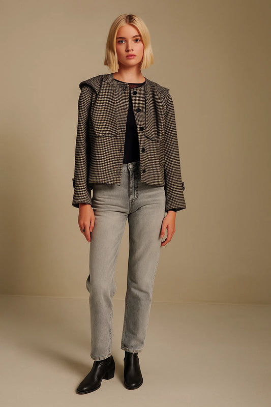 Veste En Laine À Motif Pied-De-Poule | Laine | Élégante Et Rétro-Chic | Parfaite Pour L’Automne