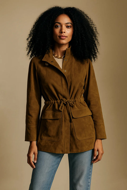 Veste Femme | Cuir Suédé | Cuir De Chèvre Ceinturé Style Saharienne
