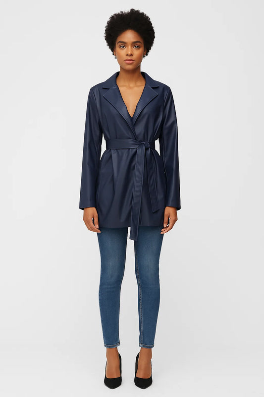 Veste Femme | Similicuir Ceinturée | Effet Cuir Élégant | Parfaite Pour Un Look Audacieux De Mi-Saison