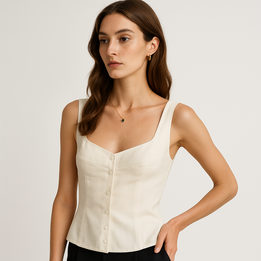 Top Tailleur Sans Manches | Boutonnage Central | Coupe Structurée