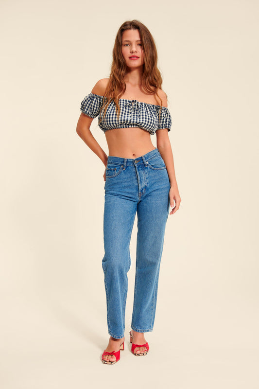 Crop Top Vichy | Épaules Dénudées | Léger Et Tendance | Parfait Pour Les Festivals Et Journées D’Été