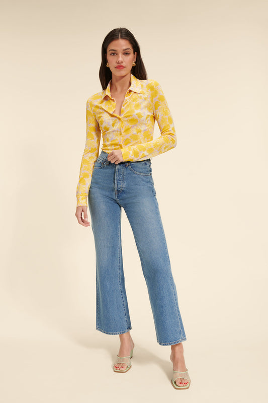 Top Fleuri Jaune | Ajusté & Lumineux | Printemps & Looks Décontractés