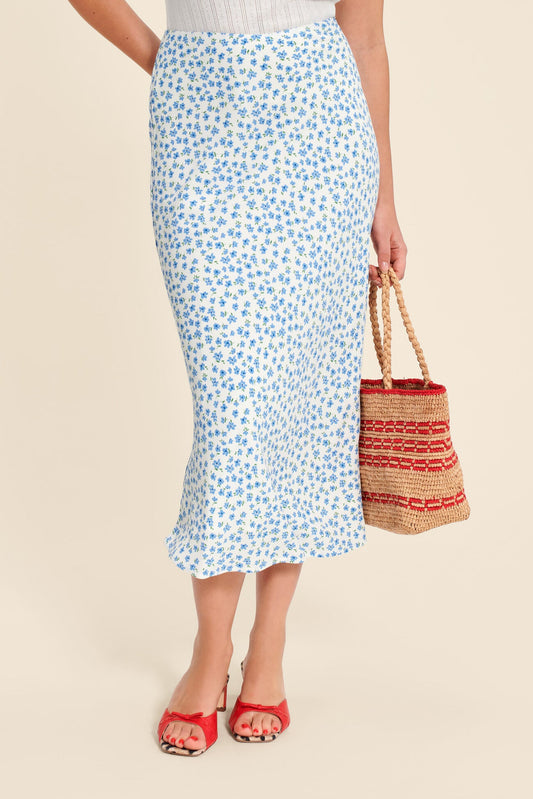Jupe Midi | À Imprimé Fleuri Bleu | Légère Et Romantique | Idéale Pour L’Été