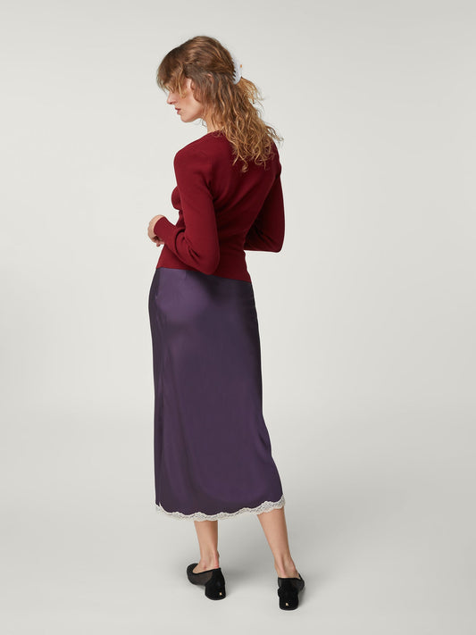 Jupe Midi | Satinée Prune Fluide | Élégante Et Féminine | Idéale Pour Les Soirées