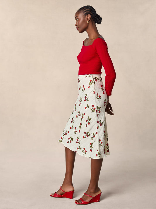 Jupe Midi | Écrue À Imprimé Fleuri | Romantique Et Légère | Idéale Pour L’Été