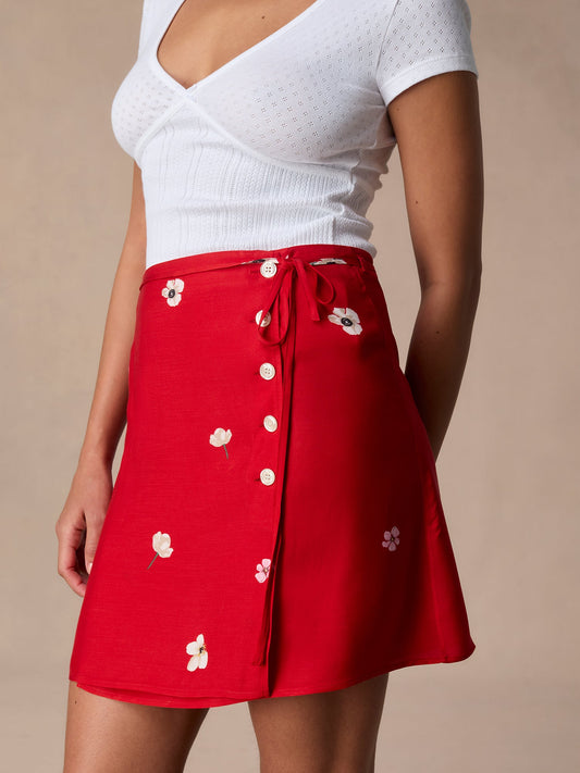 Jupe Courte | Rouge À Boutons Et Imprimé Fleuri | Légère Et Féminine | Idéale Pour L’Été