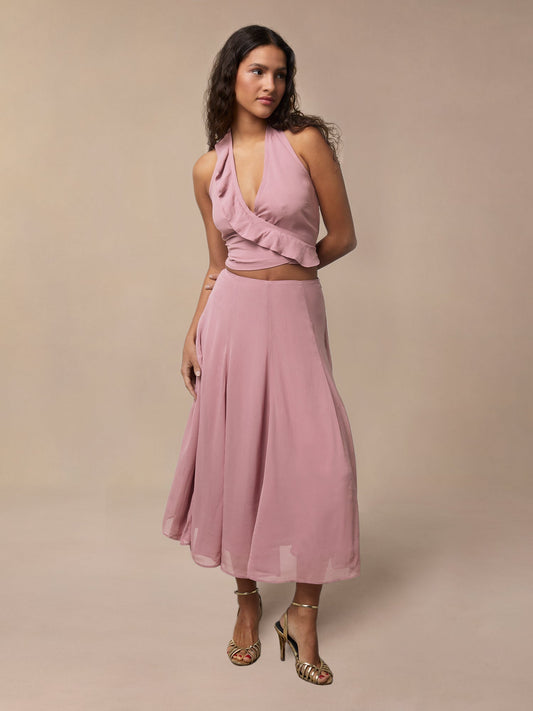 Jupe Midi | Pourpre Évasée Et Fluide | Romantique Et Élégante | Pour Les Soirées Et Cérémonies