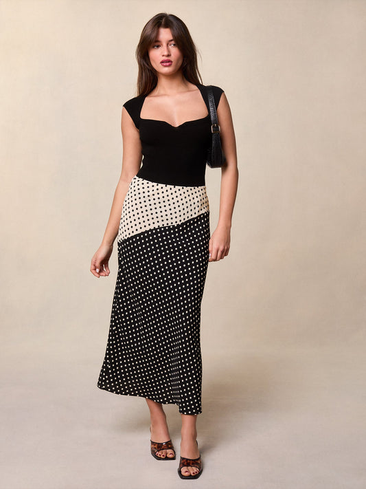 Jupe Midi | Bicolore À Pois Élégante | Moderne Et Féminine | Idéale Pour Le Bureau