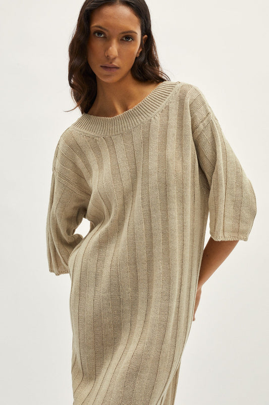 Robe Maille Midi | Coton | Col V Élégant | Parfaite Pour Une Sortie En Plein Air