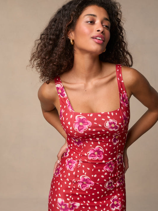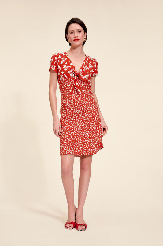 Robe Courte Rouge A Fleurs | Vive & Féminine | Été & Balades En Ville | Tissu Fluide