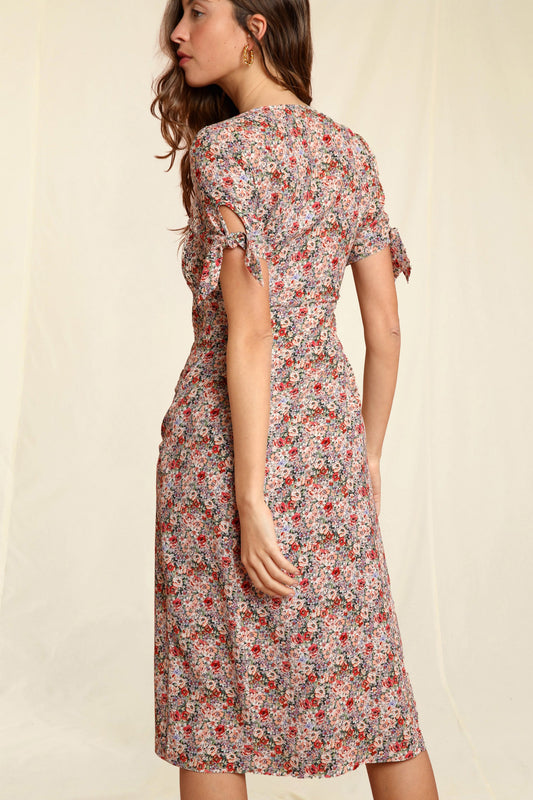 Robe Midi Boutonnée A Fleurs | Romantique & Fluide | Printemps & Quotidien | Tissu Léger