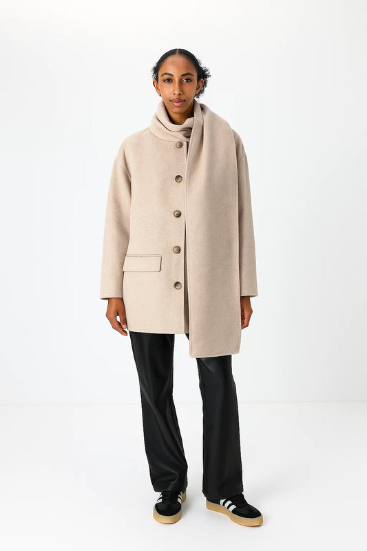 Manteau Femme | Coupe Ample Et Élégante | En Laine Avec Col Écharpe Intégré