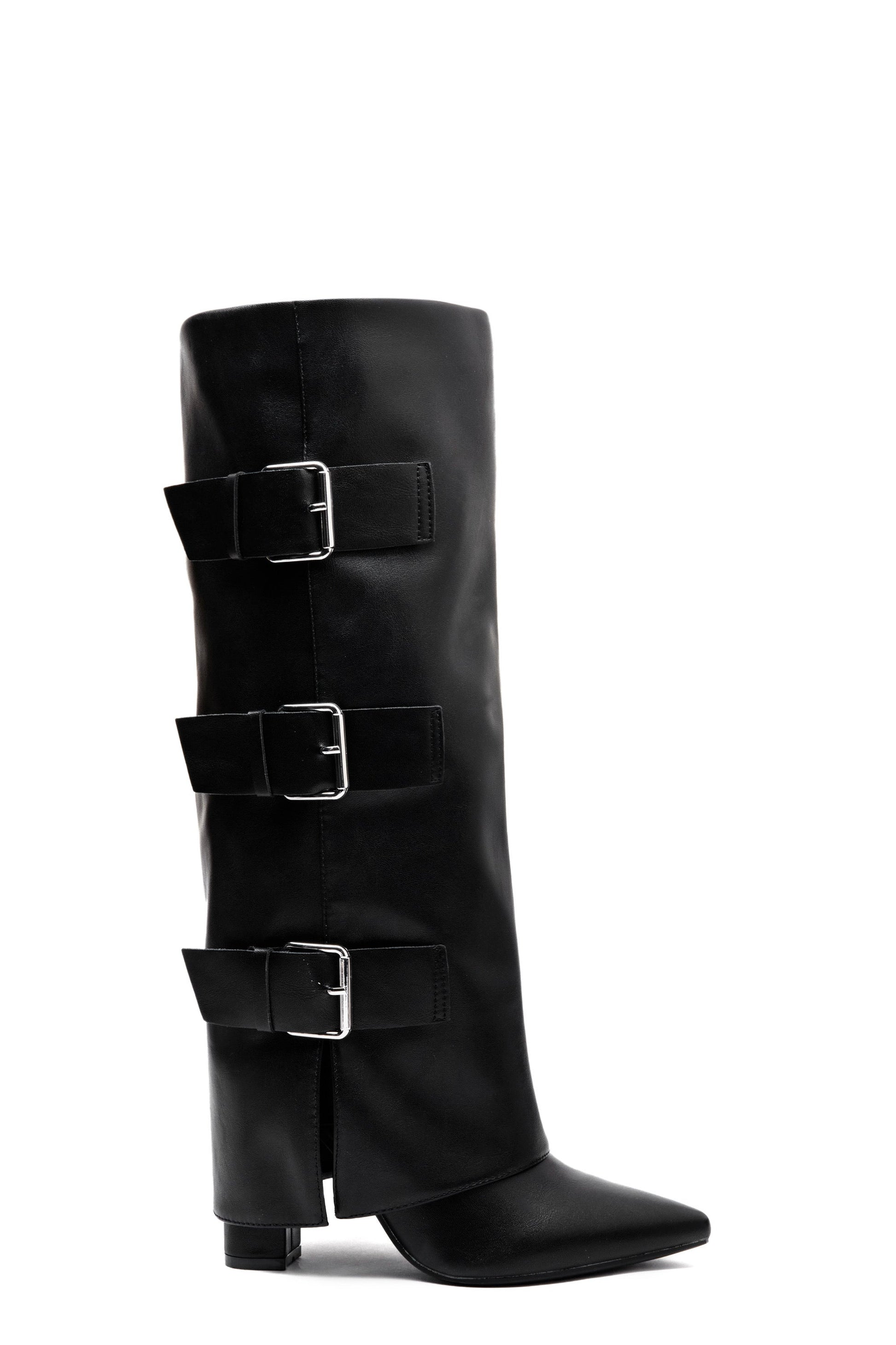 Bottes Hautes Femme | Cuir Végan Avec Boucles | Idéales Pour Un Look Structuré Et Tendance En Hiver