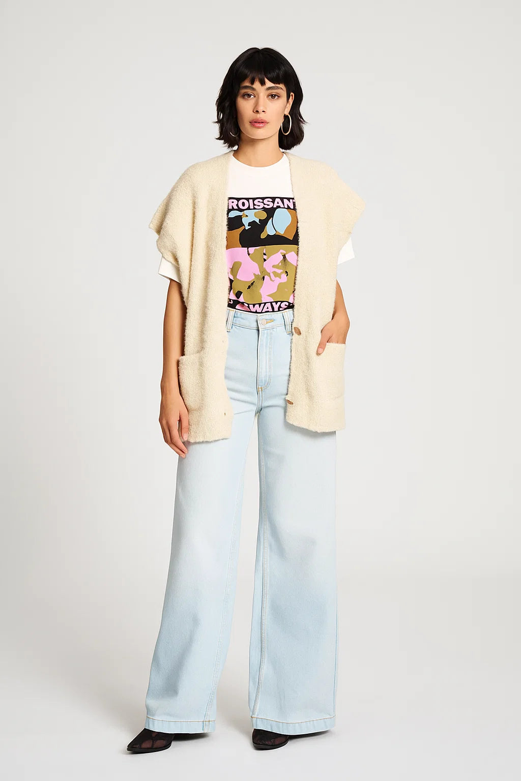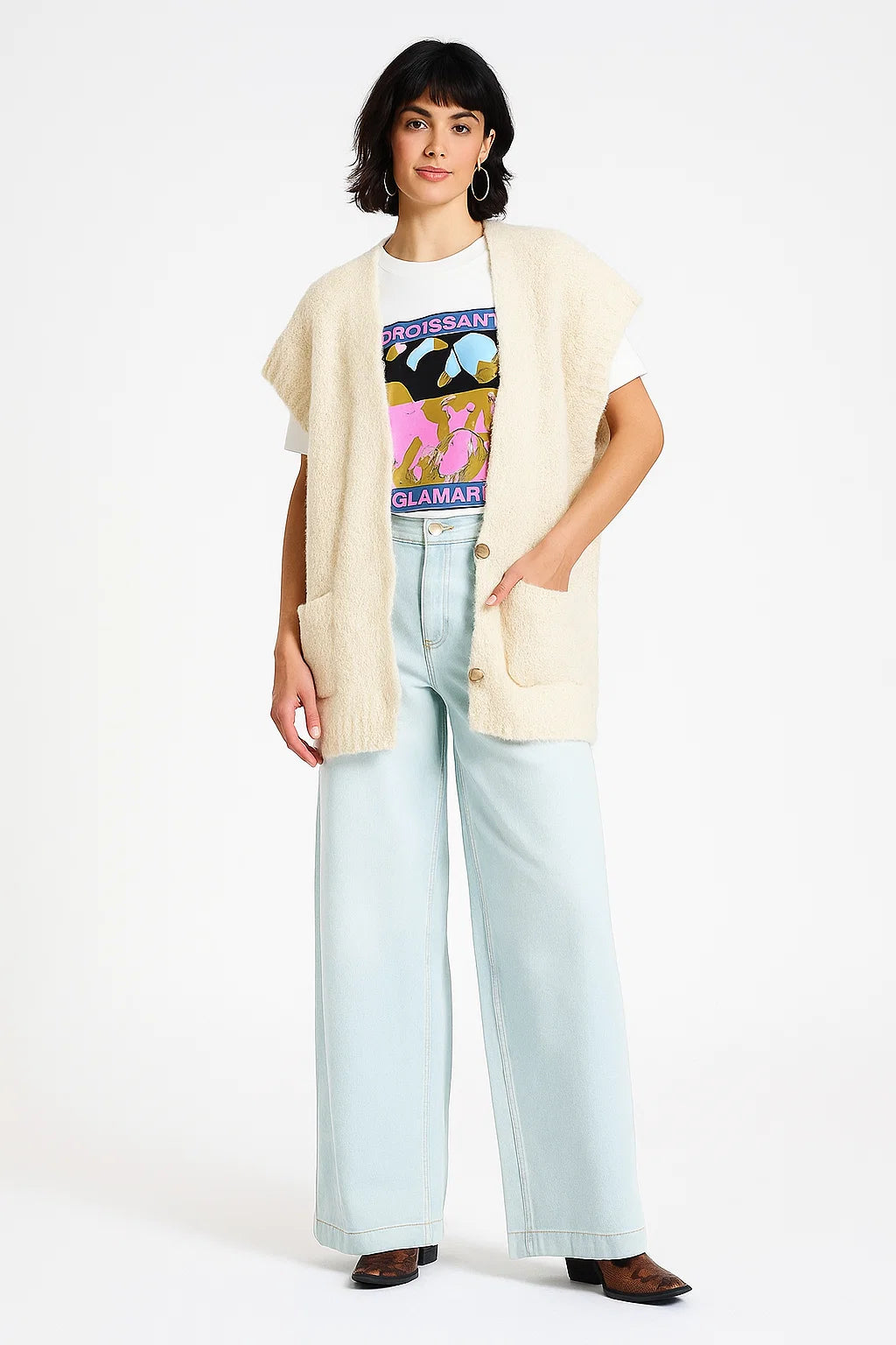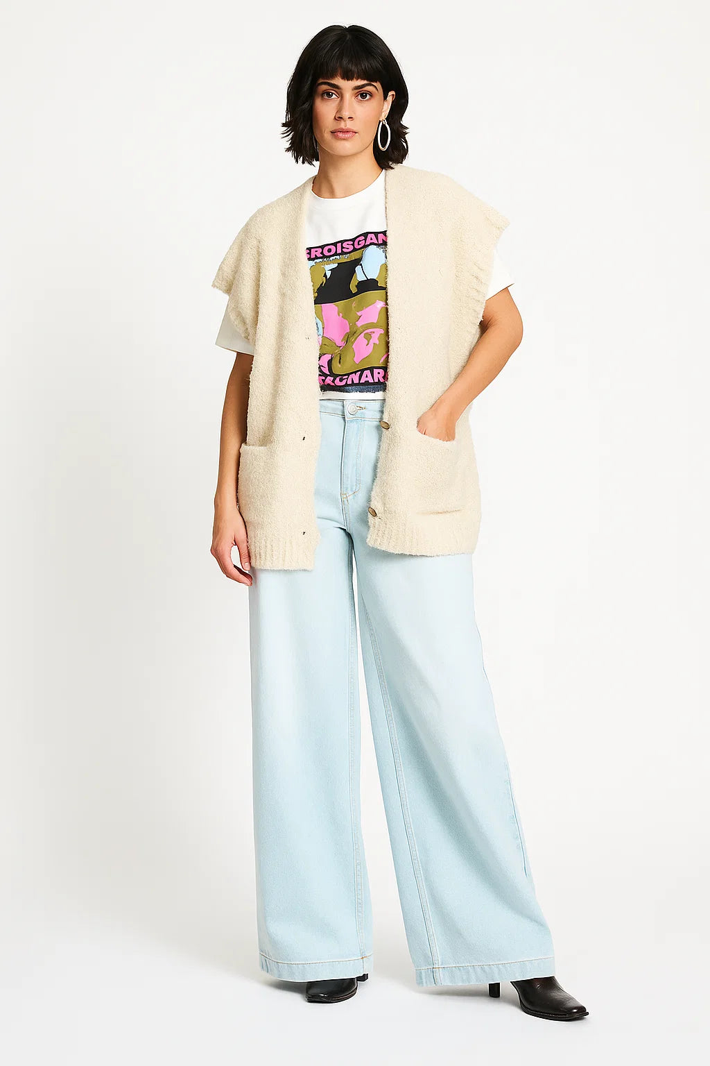 Ce gilet sans manches oversize est parfait pour un style décontracté avec une touche d’originalité. Sa coupe ample et sa maille douce en font un incontournable pour la mi-saison ou les superpositions hivernales.