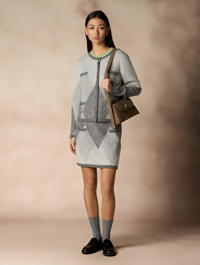 Envie d’une jupe d’hiver qui mêle chaleur et raffinement graphique ?