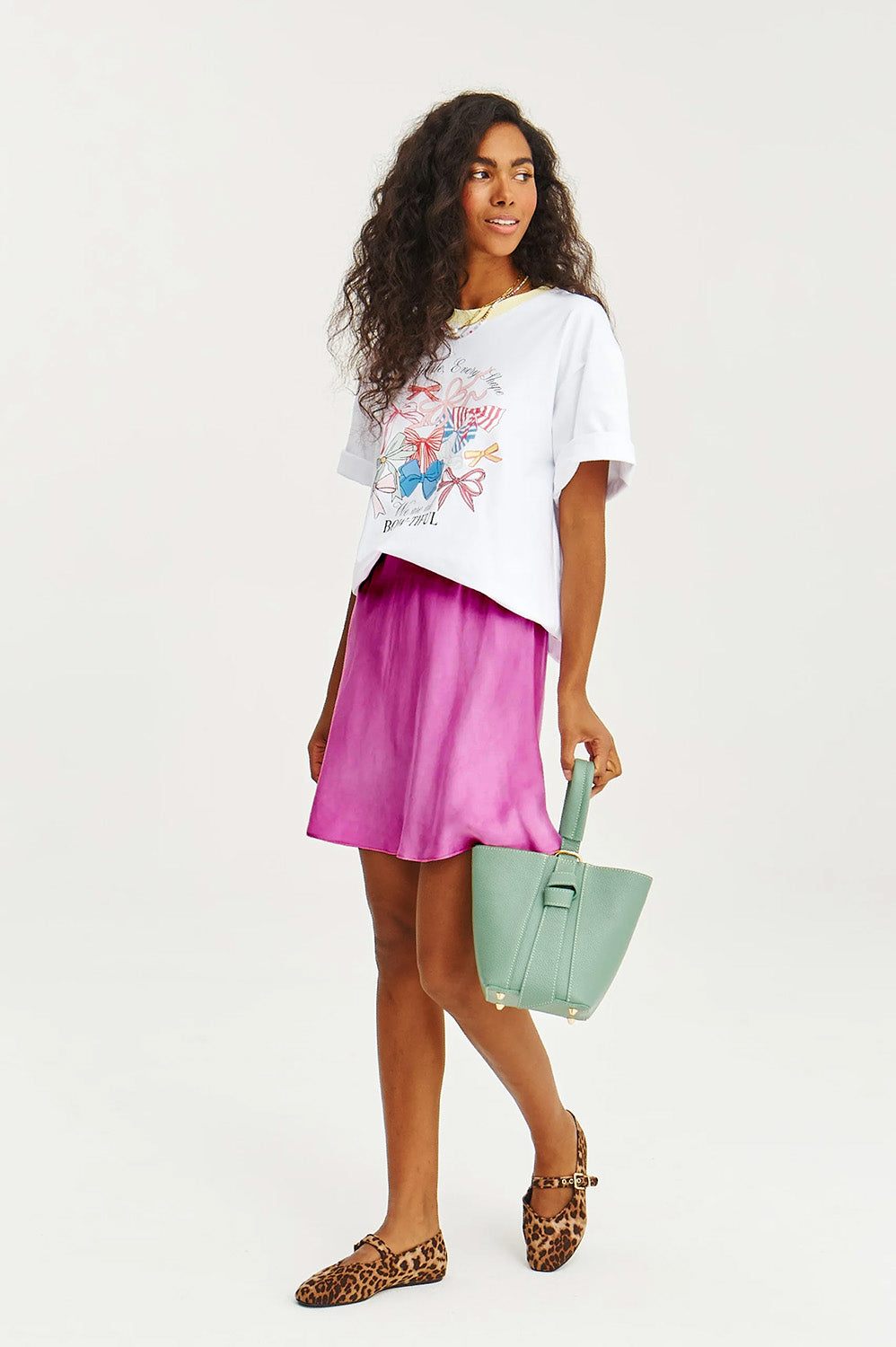 Cette jupe courte en viscose rose fuchsia est la pièce parfaite pour un look frais et féminin au quotidien. Sa coupe fluide et sa matière douce assurent confort et liberté de mouvement tout au long de la journée.