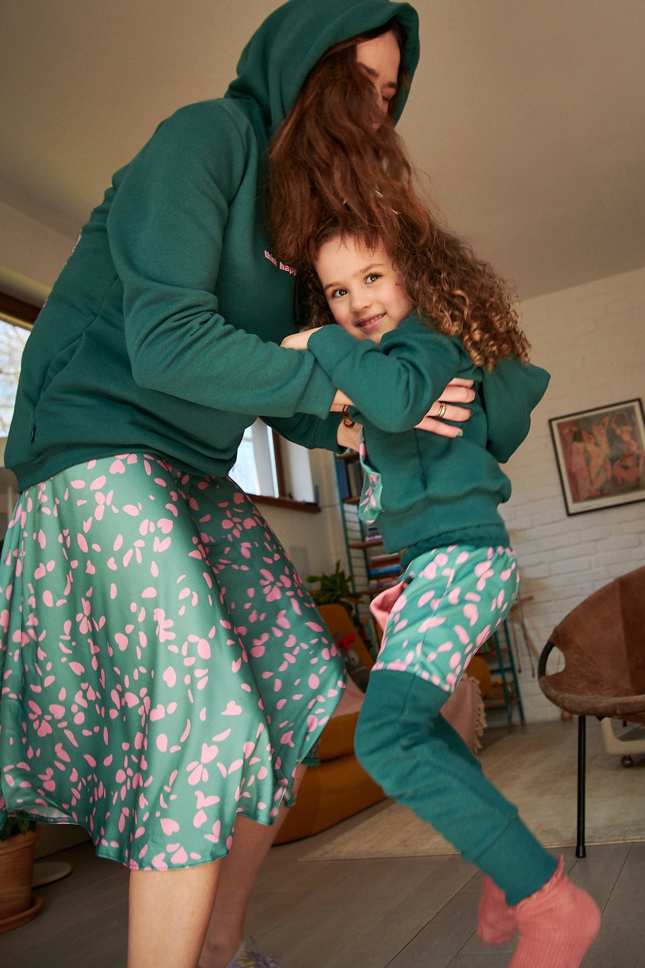 Cette jupe midi verte à imprimé floral rose offre une allure fraîche et élégante en un clin d’œil. Conçue en 100% viscose, elle est douce, légère et agréable à porter tout au long de la journée.