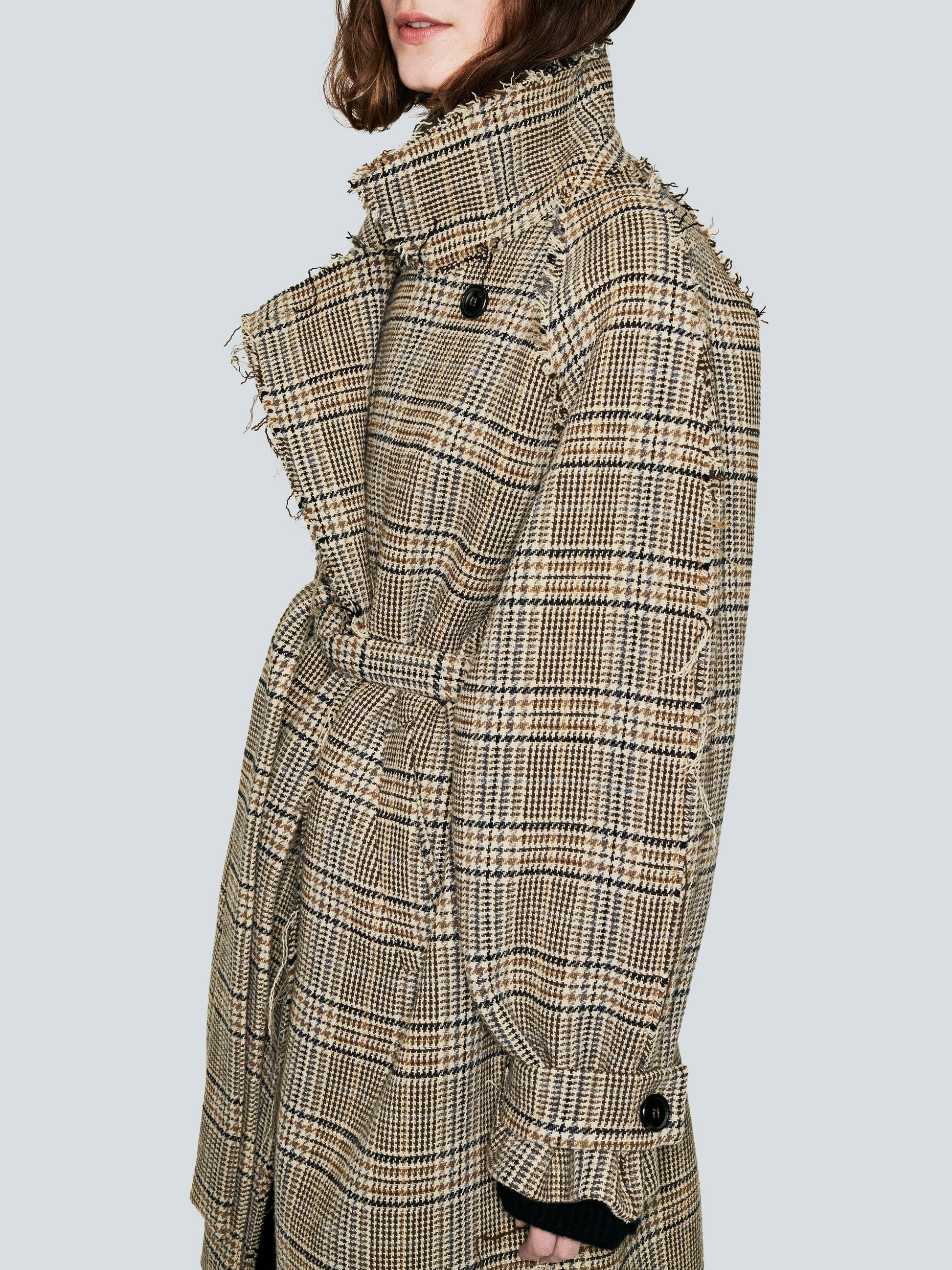 Ce manteau long à carreaux combine un style intemporel avec une matière riche en laine pour un maximum de confort. Sa coupe oversize et ses finitions classiques en font une pièce forte, parfaite pour toutes vos tenues de saison.