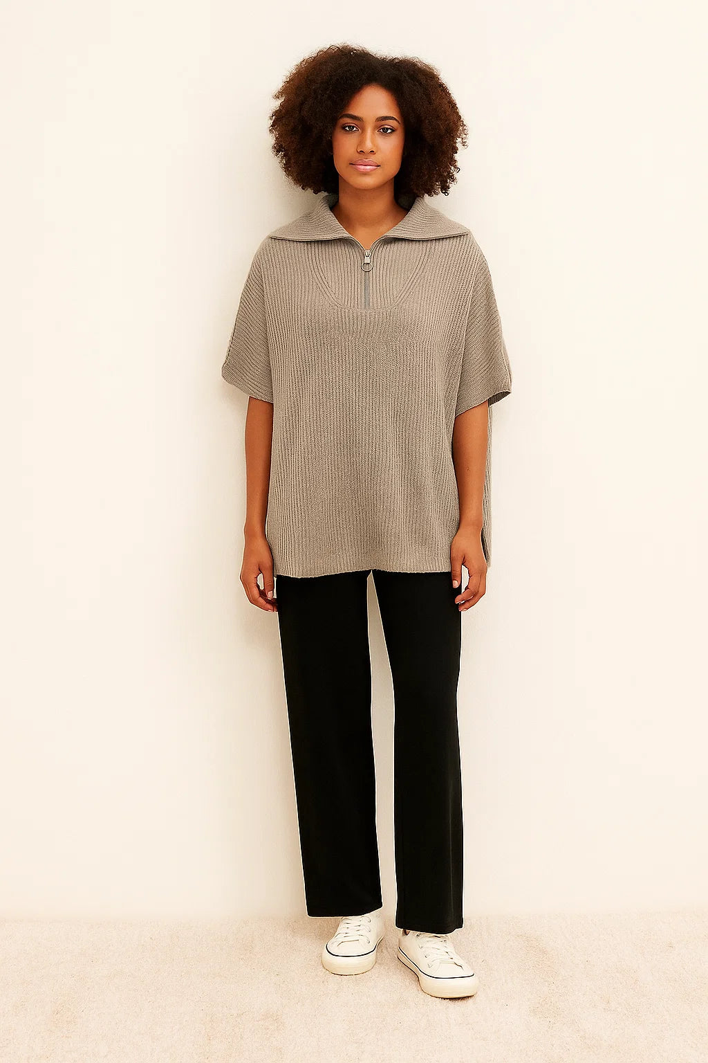 Poncho Zippé Femme | Acrylique | Maille Douce | Style Décontracté et Élégant
