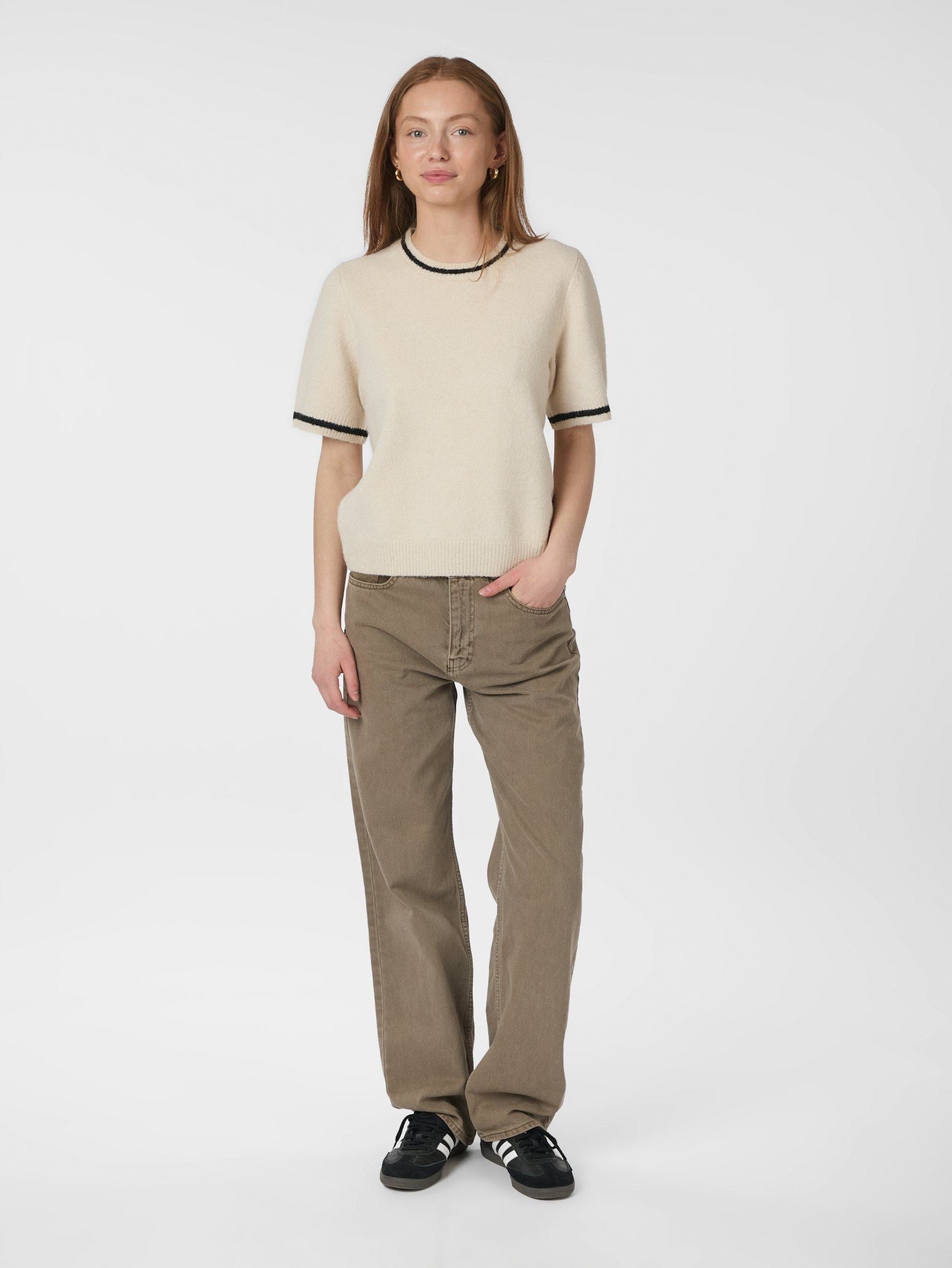 Ce modèle écru à bordures contrastées allie simplicité, confort et élégance. Avec sa coupe ajustée et sa matière douce, il est idéal pour composer des looks à la fois casual et soignés.