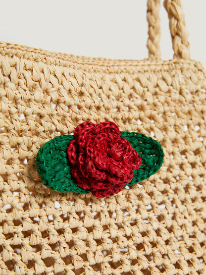 Sac Cabas Femme | Paille avec Fleur | Idéal pour un Look Bohème et Estival