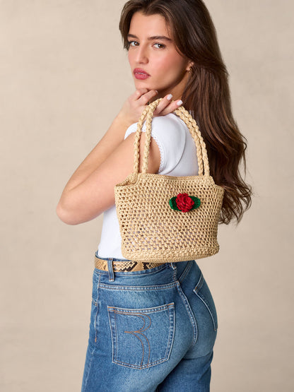 Ce petit cabas en paille tressée orné d’une fleur apporte une note romantique et estivale à vos tenues. Léger et pratique, il vous accompagne avec style tout au long de la journée.