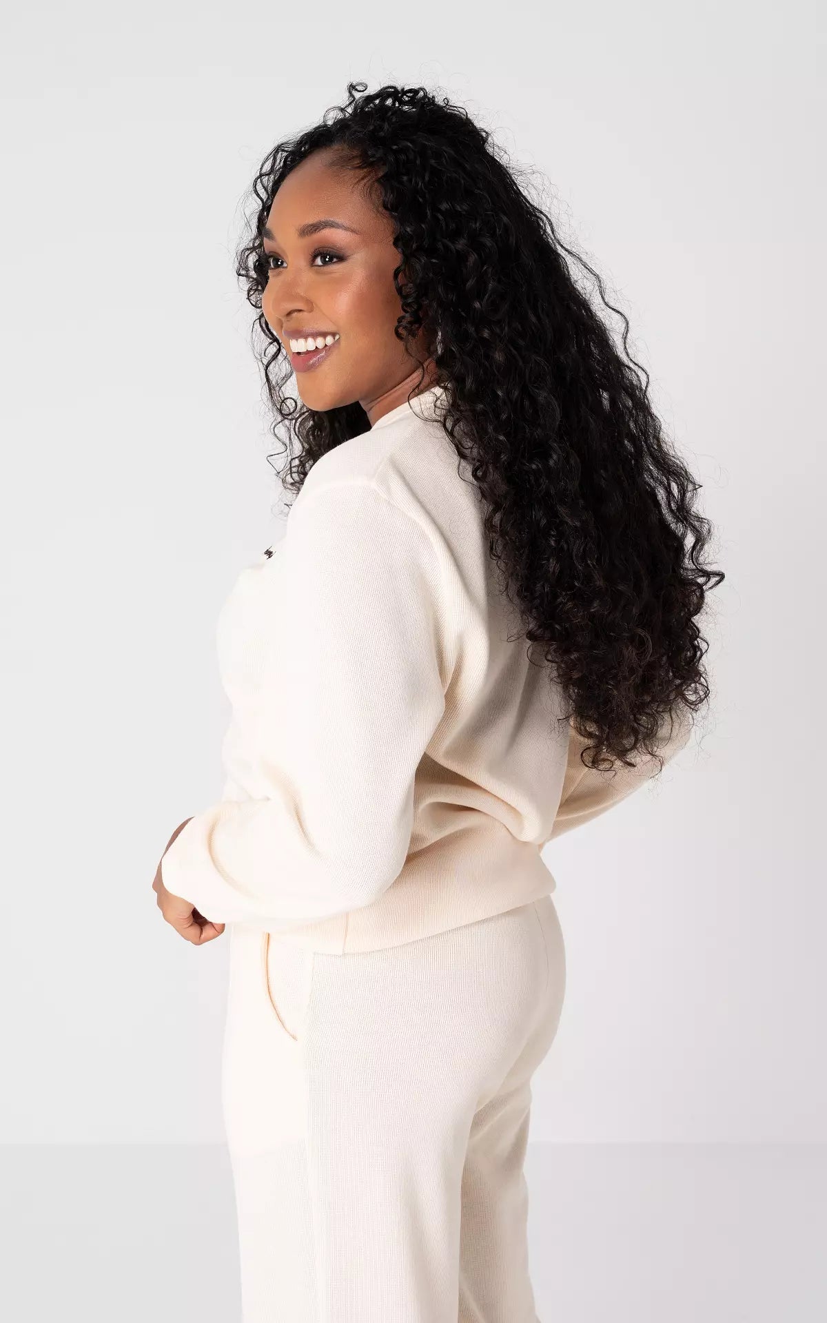 Conseil de style : Portez-le avec le pantalon assorti pour un look cosy complet, ou avec un jean mom pour un mix décontracté et urbain.