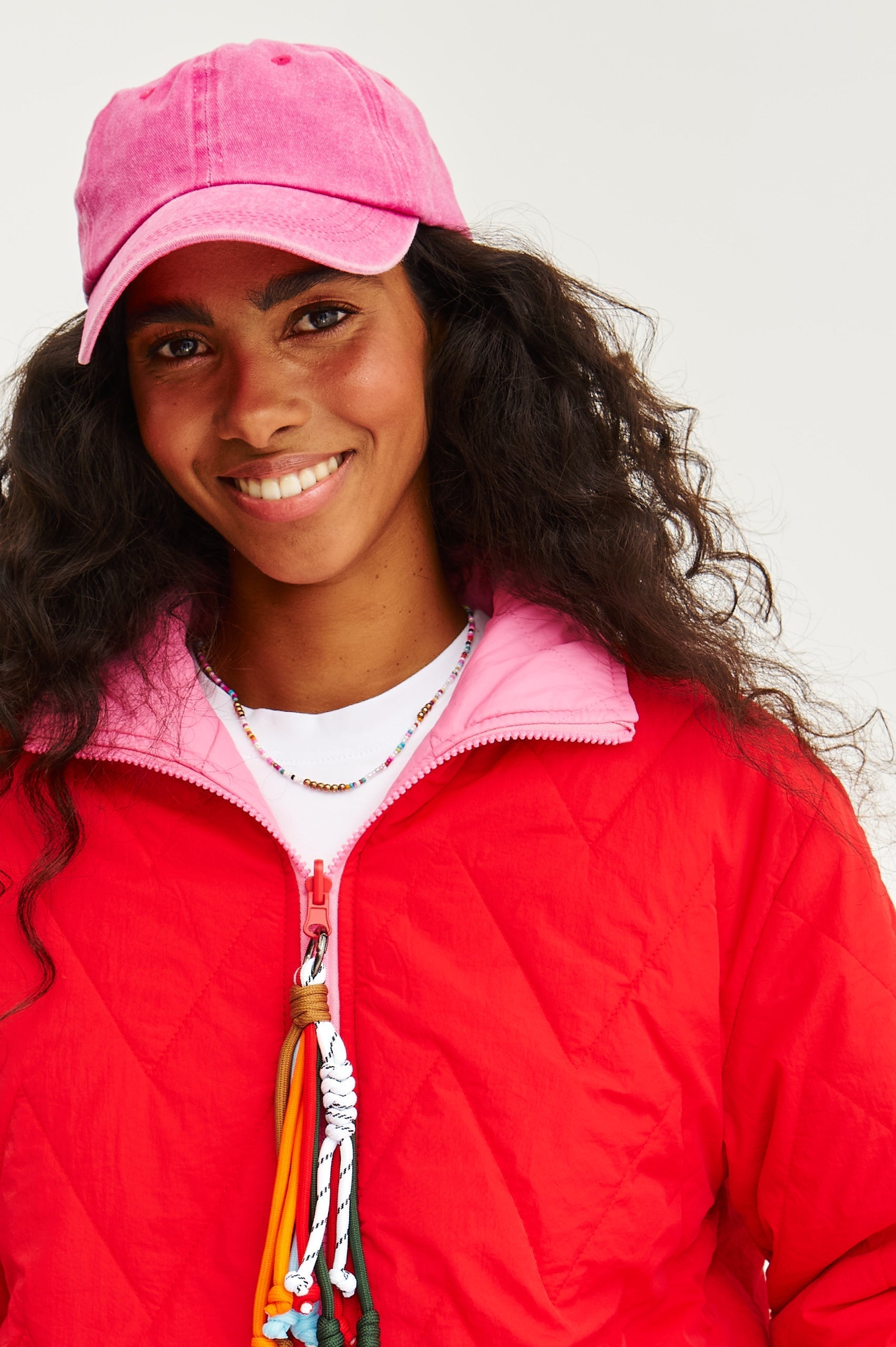 Conseil de style : Portez-la côté rouge avec un jean clair et des sneakers pour un look sportif et vitaminé.